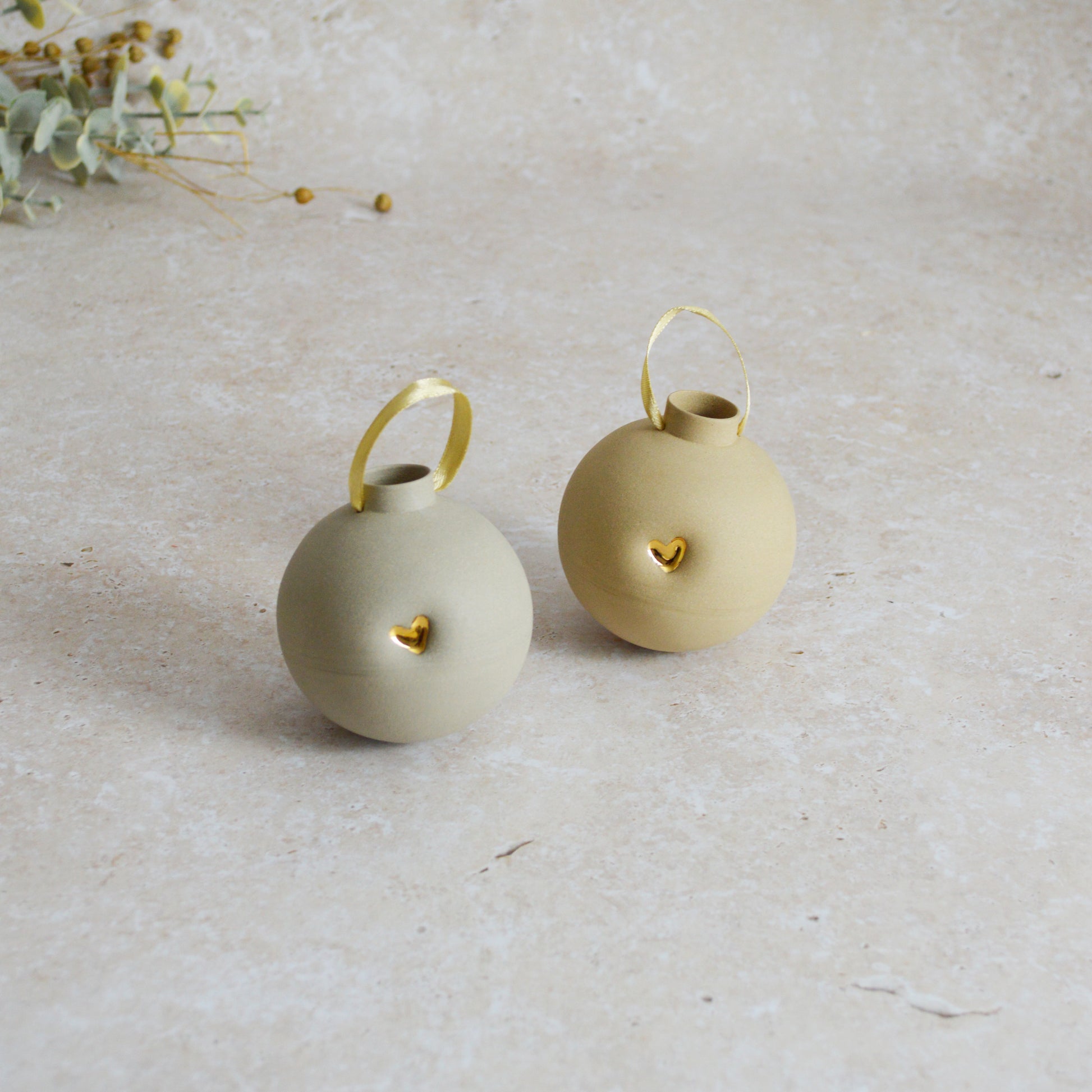 Seconds* Large Pastel Bauble With A Gold Heart | Stoneware | Hanging Christmas Decorations | Christmas Tree Decor (B31)