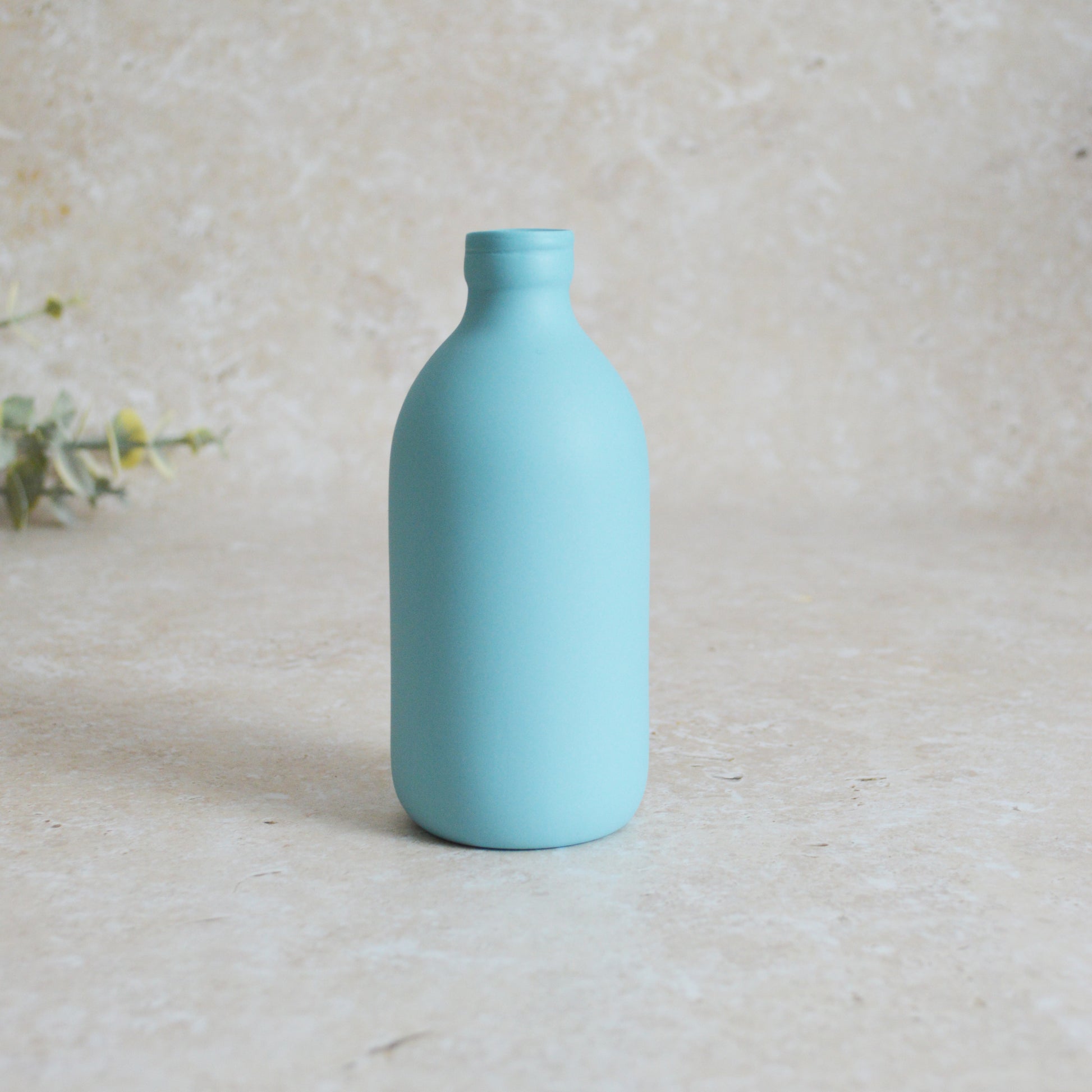 This mint bottle is handmade from stained porcelain and hand polished for a smooth matte finish giving it a very soft feel. Each bottle is taken through at least nine stages, from casting, to fettling, firing and to polished twice, every step is just as important as the last. Each heart is hand stamped and embossed with my own handmade heart, it is then hand painted, making it the sweetest gift for birthdays, anniversaries and mother's day. The bottles are glazed on the inside to hold water.