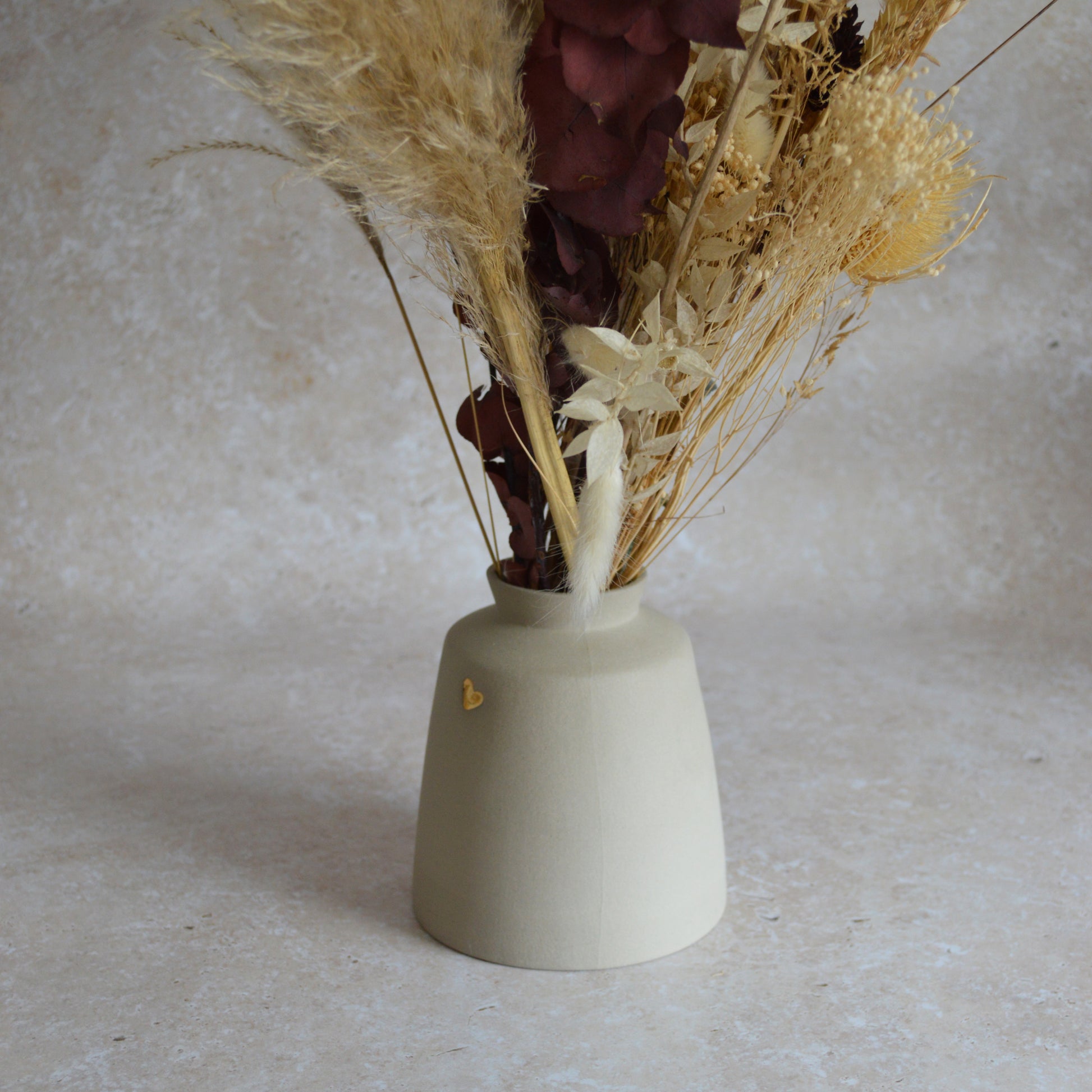 This pastel grey collard vase is one of the newest additions to the Sejal Ceramics range. The gold embossed heart, which is hand stamped and painted, makes it perfect a perfect gift for her on Mother's day, Anniversaries, Valentines and Birthdays, to name a few occasions! Paired with dried or fresh flowers they make the perfect duo.