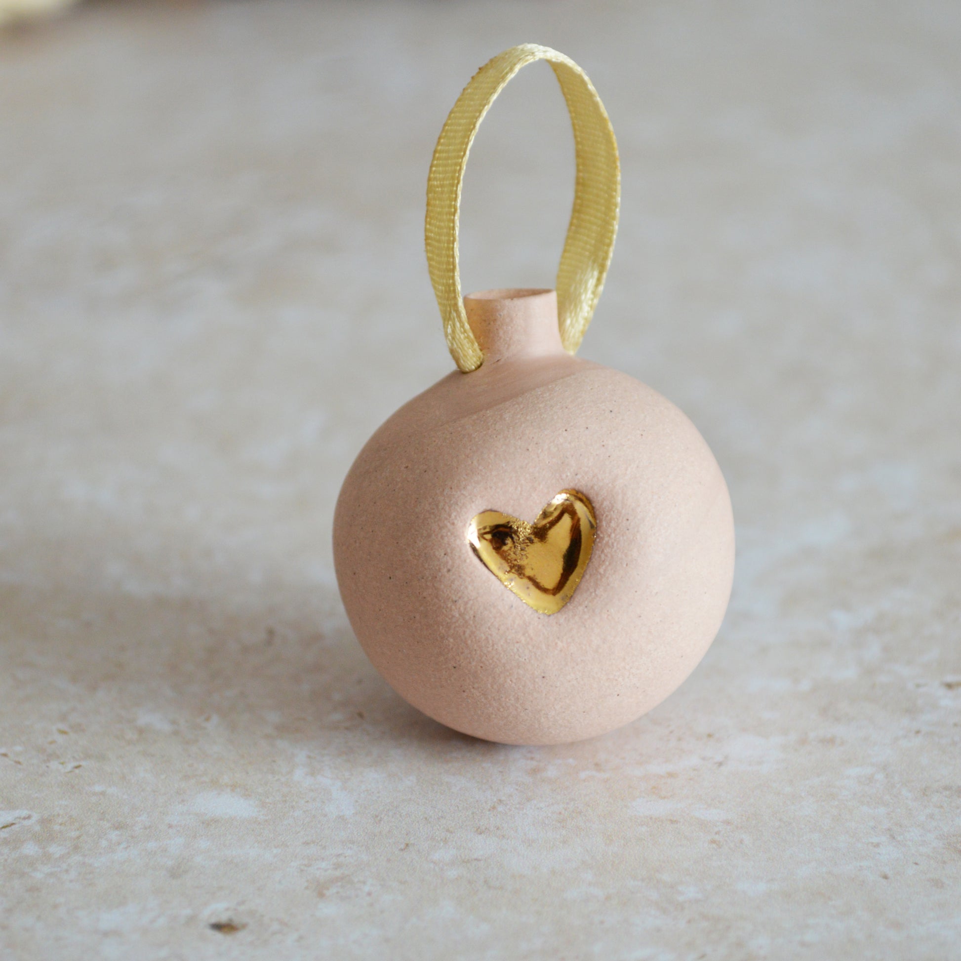 Seconds* PINK Mini Pastel Bauble With A Gold Heart | Stoneware | Hanging Christmas Decorations | Christmas Tree Decor (B88)