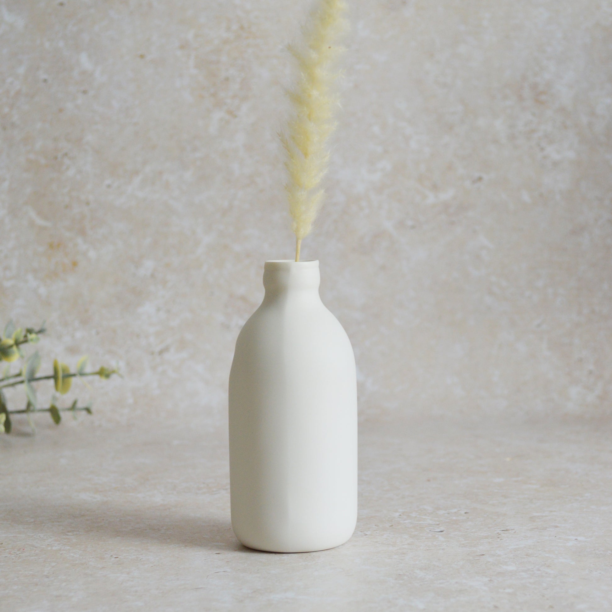 This white bottle is handmade from stained porcelain and hand polished for a smooth matte finish giving it a very soft feel. Each bottle is taken through at least 9 stages, from casting, to fettling, firing and being polished twice, every step is just as important as the last. Each heart is hand stamped and embossed with our own handmade heart, it is then hand painted, making it the sweetest gift for birthdays, anniversaries and mother's day. The bottles are glazed on the inside to hold water.