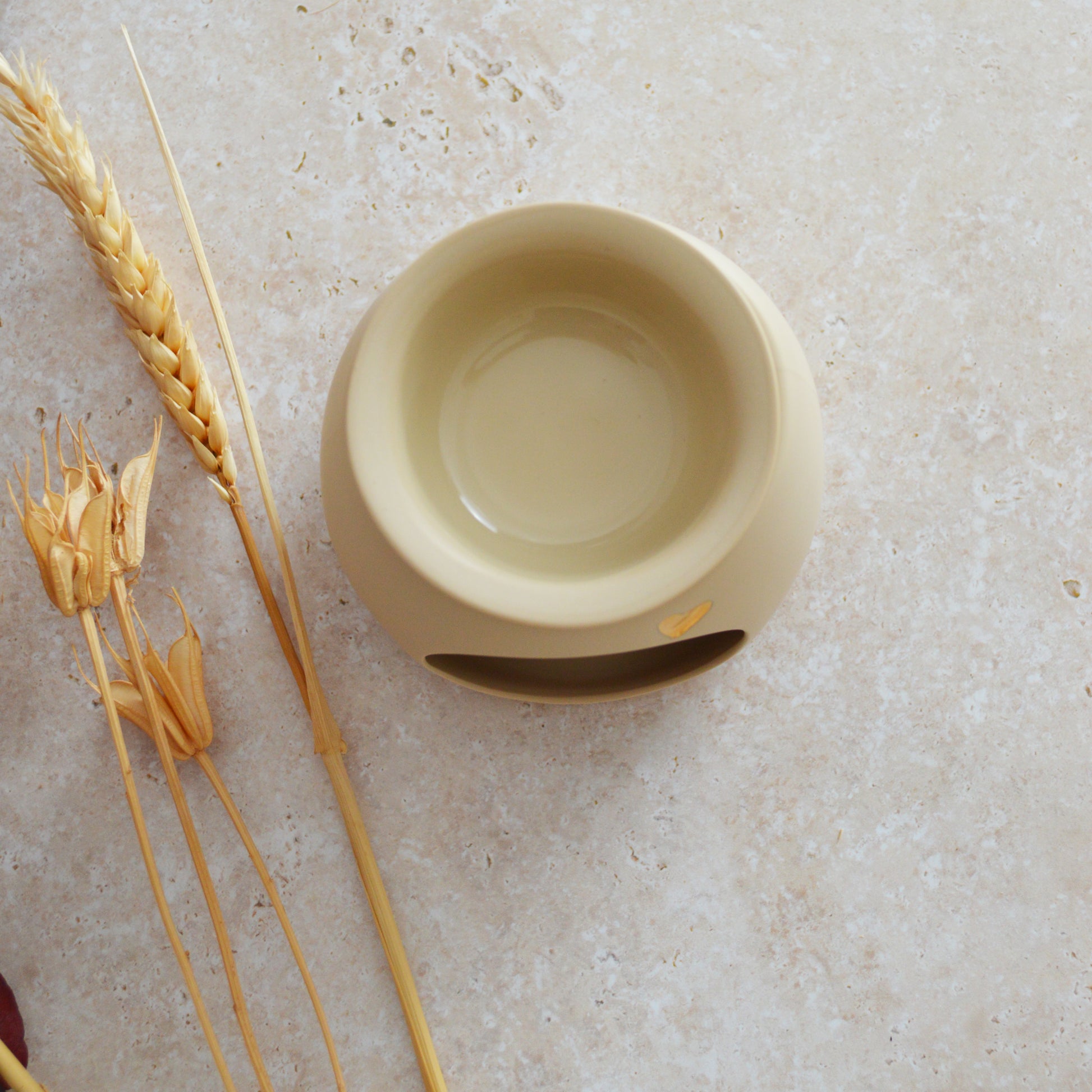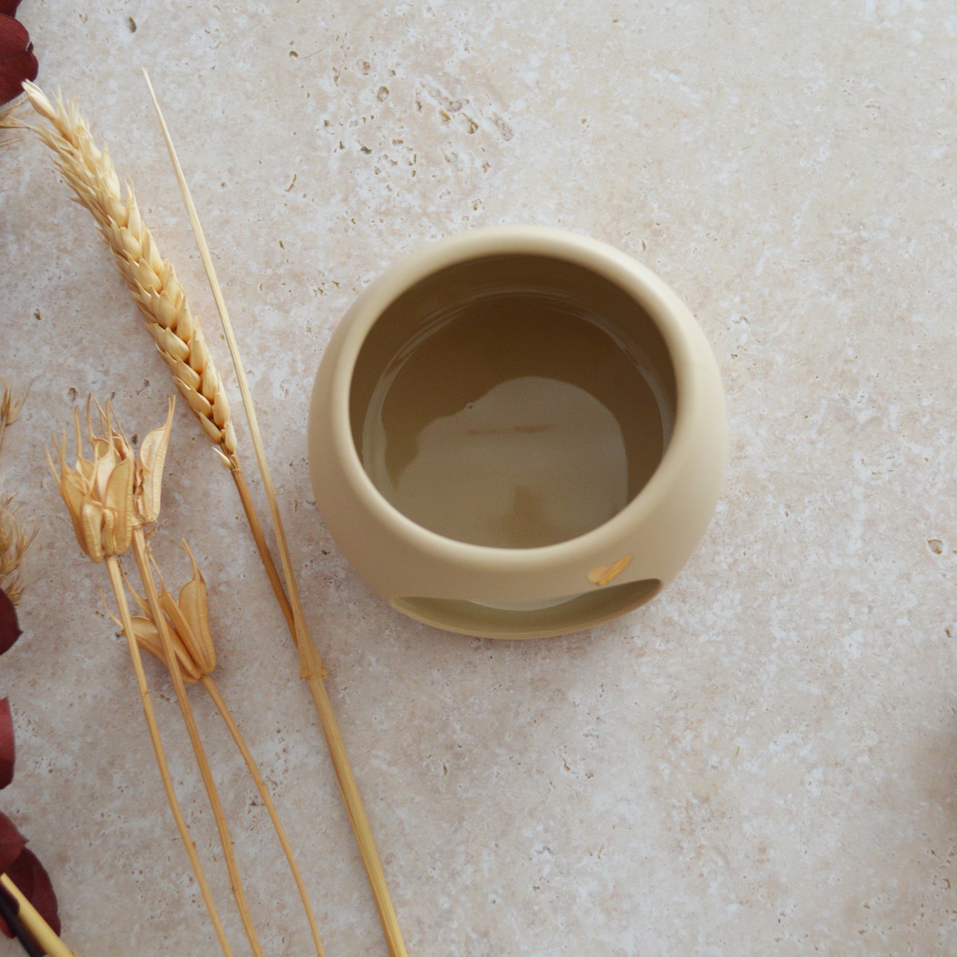 Seconds* Pastel BEIGE Wax And Oil Burner With A Gold Embossed Heart And Detachable Lid | Wax Burner | Porcelain (A3)